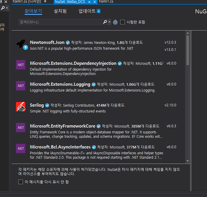 참조 부분에서 마우스 오른쪽을 누르고 Nuget 패키지 관리를 눌러주세요.
