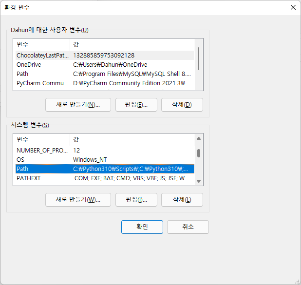 path는 시스템 변수 안에 같이 있으니까 금방 찾으실 수 있습니다.