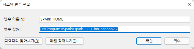 SPARK_HOME과 HADOOP_HOME으로 아래 경로를 등록 해 줍니다.