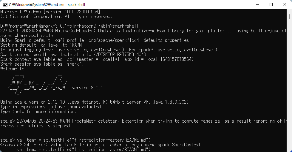 이상으로 Windows 환경에서 Apache Spark 설치를 완료했습니다.