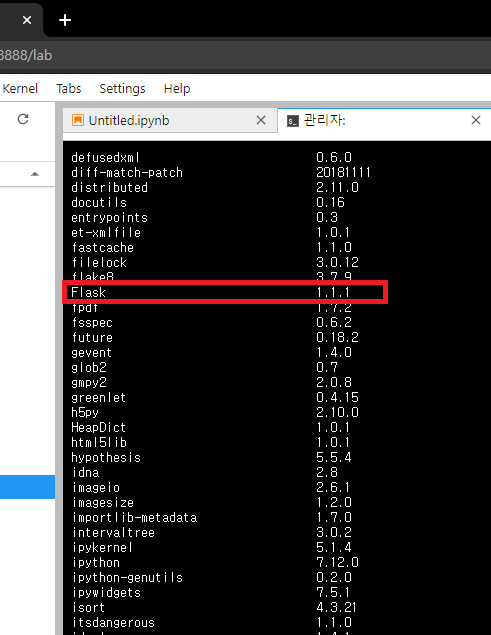 이번에도 어김없이 jupyter lab에서 실행 해 볼 겁니다. Flask 실행은 Pycharm이라는 환경이 더 좋지만, 지금은 소개만 할 것이니까 괜찮습니다.