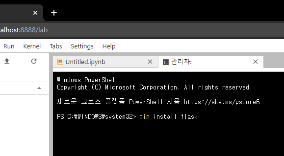 먼저 터미널을 열고 pip install flask 를 입력하세요.