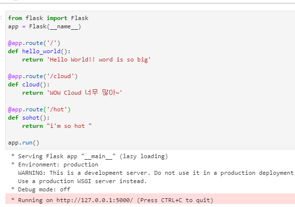 실제로 URL에 127.0.0.1:5000/ 이렇게 우리가 접근 했기 때문에, 위 경로로 들어온것임을 프로그램이 인지한 것이죠.
