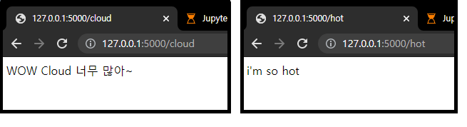/cloud로 하니까 cloud 함수 내용이 나오고, /hot으로 하니 해당 함수(sohot) 내용이 나옵니다.