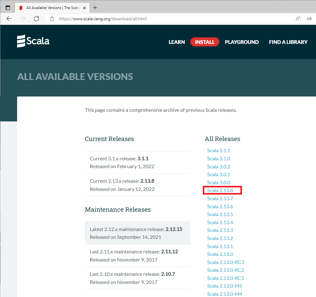 그러면 아래와 같이 화면이 나옵니다. 여기서 저는 2.13 버전을 선택하겠습니다.