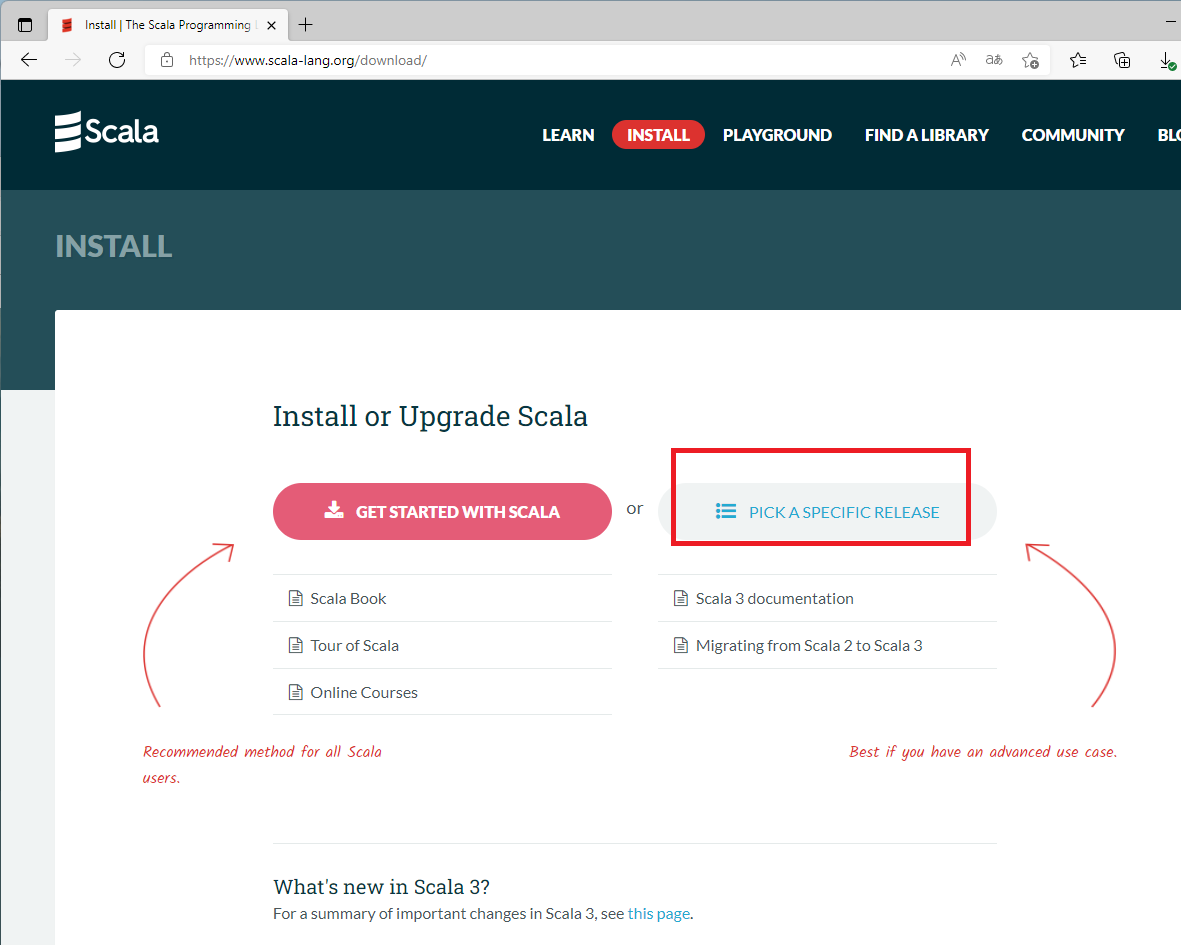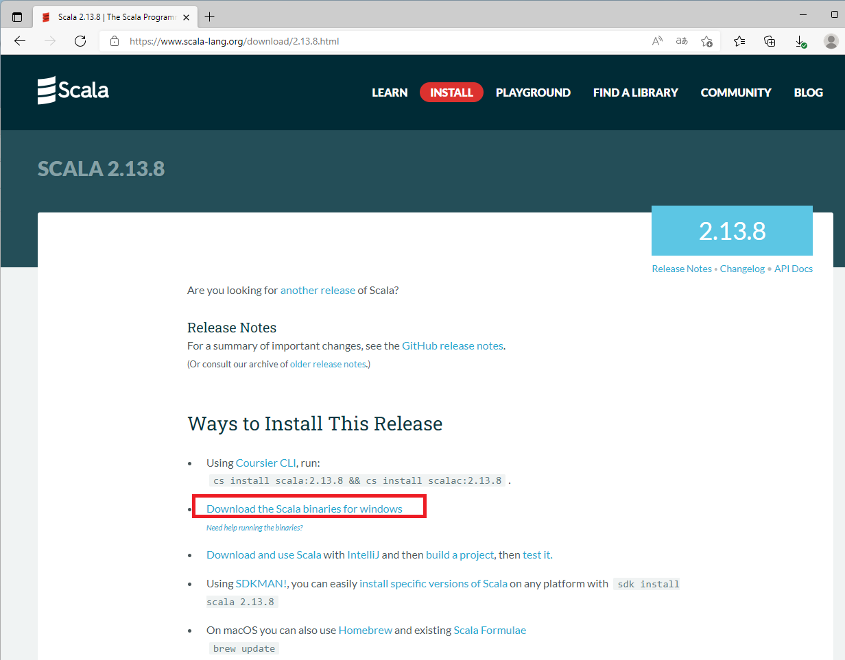 눌러서 들어간 뒤에, Download the Scala binaries for windows 를 눌러주시면 다운로드가 이뤄집니다.