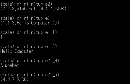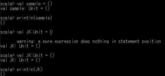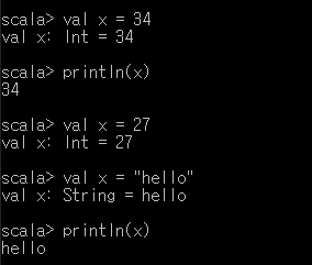 이제 간단한 입력들을 통해 scala 언어 문법을 확인해 보겠습니다.
