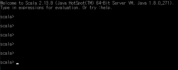 먼저 cmd로 scala REPL 창을 열어줍니다.