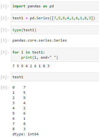 type을 확인해보니 Series인 것을 확인할 수 있죠. iterable하기 때문에 for문에서 곧바로 사용할 수도 있습니다.