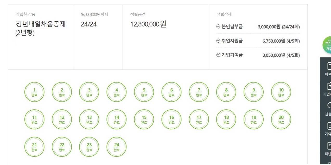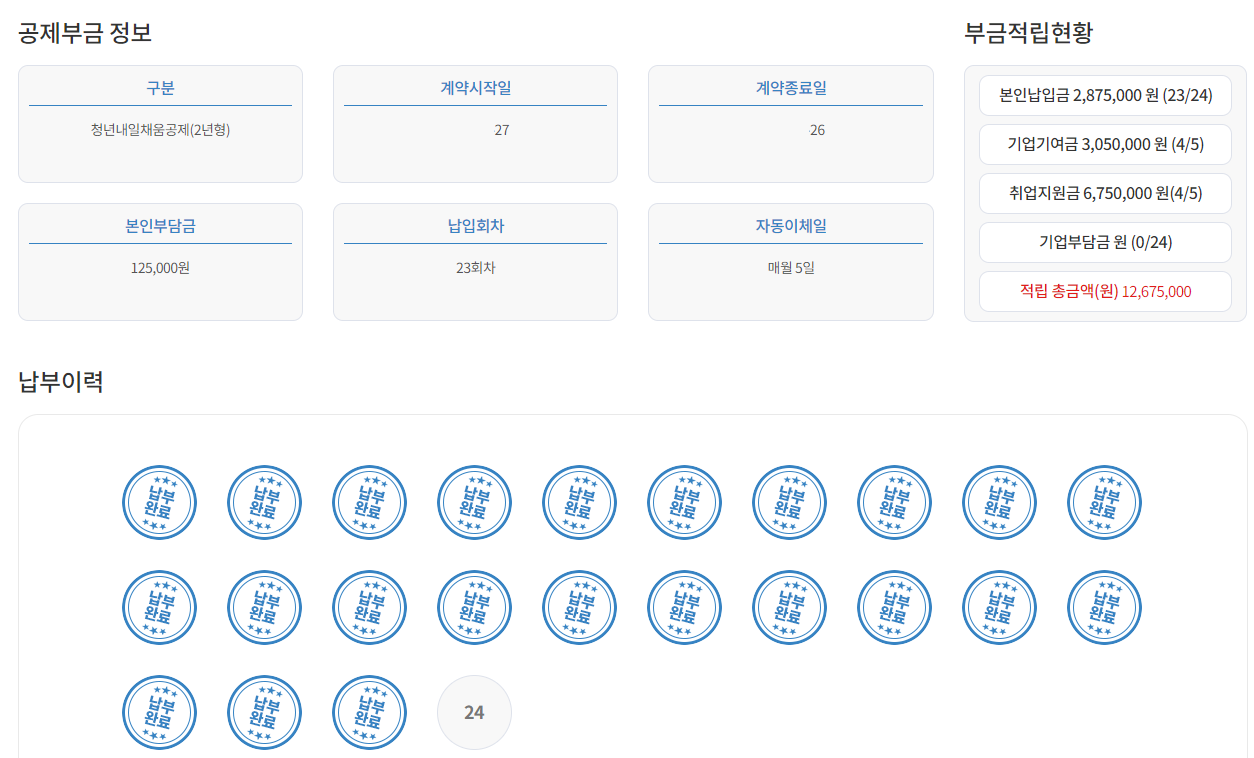 다 채웠을때~ (아직 1회분 취업지원금, 기업기여금이 안들어왔죠?)